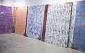 Scripture (2011), Mallick Williams & Co. Gallery: Kullig's large paintings of textured patterns were intentionally displayed in shrink wrap and staged in the corner of the gallery, leaving visitors to wonder if the work was out of place.[16]
