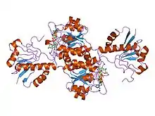 D-lactate dehydrogenase (EC 1.1.1.28, lactic acid dehydrogenase, lactic acid dehydrogenase, D-specific lactic dehydrogenase, D-(-)-lactate dehydrogenase (NAD+), D-lactic acid dehydrogenase, D-lactic dehydrogenase) is an enzyme with systematic name (R)-lactate:NAD+ oxidoreductase.[1] This enzyme catalyses the following chemical reaction