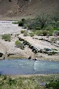 ![]() Washing laundry on the banks of the Dades River in the Dades Gorge, Morocco. | |