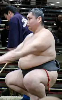 Daimanazuru Kenji (born January 16, 1977 as Kenji Omae) is a former sumo wrestler from Kawakami, Yoshino District, Nara, Japan. He began his professional career in 1992, and spent a total of 19 tournaments in the top two divisions, peaking at maegashira 16 in 2006. He retired at the end of the January 2010 tournament and has chosen to work outside of the Sumo Association.