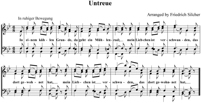 - ↑ "491. Untreue". Volksliederbuch für Männerchor (in German). Vol. 2. 1906. p. 448 – via Internet Archive.