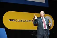 Sir David Nicholson KCB CBE is a public policy analyst and NHS Manager who is the Chair of Sandwell and West Birmingham Hospitals NHS Trust and Chair of Worcestershire Acute Hospitals NHS Trust. He was previously the Chief Executive of the National Health Service in England.[1] He was appointed in October 2011 following the NHS reforms, having been seventh Chief executive of the NHS within the Department of Health since September 2006. He issued what has become known as the "Nicholson challenge" regarding the finances of the NHS. He retired from the role on 1 April 2014 in the wake of the Stafford Hospital scandal.[2]