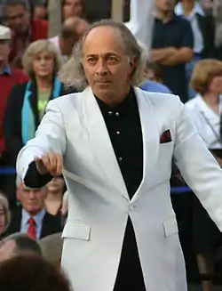 As an enthusiast of Bernstein, he had been behind several revivals of Candide, including conducting an acclaimed 2003 German language production narrated by Loriot and a 2008 production in Charleston, South Carolina.[5] He was also involved in the staging of a notable production of Gershwin's Porgy and Bess in Charleston, the city where the opera is set, which went on to tour internationally in the early 1990s.[6] In 2009 he celebrated 25 years at CSO and 10 years at the Gärtnerplatz.
