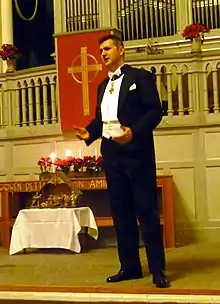 In the mid-1980s, Zovko began studying solo singing as a bass-baritone at the Music School in Mostar, first with prof. Jarmila Prpić, and later with prof. Amira Voljevica and prof. Orijana Vozila. Preparations with prof. Paša Gackic, for her regular class at the Sarajevo Music Academy, were interrupted by the Bosnian War. As a soloist, Zovko performed in Croatia,[12] Germany, Denmark, United Kingdom and Sweden,[13] among others. In 1998, he published, together with the American pianist and priest of the Swedish Lutheran Church Timothy Stayton, an album with solo songs of Ivan von Zajc. The purpose of this musical production, produced by Bo Edving and recorded in the Swedish studio Skyline, in collaboration with the Croatian Catholic Missions in Sweden, was, among other things, to present Croatian art music to Swedish audiences. Humanitarian concerts take a special place in Zovko's singing career. They were earlier performed for the purpose of giving aid to Zovko’s war-torn homeland,[14][15] and later for supporting the Christian schools in the Holy Land.[16][17][18] Zovko received several awards for his long-term humanitarian and cultural work.