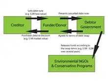 - 1 2 Deacon, Robert T; Murphy, Paul (1997). "The Structure of an Environmental Transaction: The Debt-for-Nature Swap". Land Economics. 73 (1): 1–24. doi:10.2307/3147074. JSTOR 3147074.