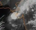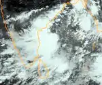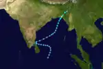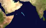 The IMD began monitoring an area of low pressure over the Laccadive Islands on October 10. The low traveled towards the northwest with little development.[7] On October 15, the JTWC issued a TCFA as the system became better organized. Although wind shear increased, the first advisory was issued the next day. With minimal convection, the storm never intensified past 65 km/h (40 mph).[9] The system traveled towards the northeast and weakened due to strong wind shear. On October 17, the storm fell below tropical storm status and made landfall on the Kathiawar Peninsula, near the same area where 03A made landfall in early June.[7] The storm dissipated shortly after landfall.[7][9]
