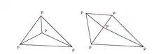 - Four or more points on a perfect circle, where the triangulation is ambiguous and all circumcenters are trivially identical.