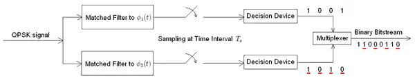 Demodulation is extracting the original information-bearing signal from a carrier wave. A demodulator is an electronic circuit (or computer program in a software-defined radio) that is used to recover the information content from the modulated carrier wave.[1] There are many types of modulation so there are many types of demodulators. The signal output from a demodulator may represent sound (an analog audio signal), images (an analog video signal) or binary data (a digital signal).