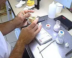 A dental technician is a member of the dental team who, upon prescription from a dental clinician, constructs custom-made restorative and dental appliances.[1][2]