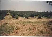Jojoba plantations, such as those shown, have played a role in combating edge effects of desertification in the Thar Desert, India.[81]