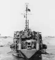 Full assault by Japanese torpedo planes, bombers, and kamikazes against the semi-isolated destroyer minesweepers in the difficult waters of Lingayen Gulf proved too much for their antiaircraft capabilities when isolated from the screening that could be provided by more heavily armed destroyers and battleships. As the Naval historian Samuel Eliot Morison noted with respect to the destroyer minesweepers at the Battle of Lingayen Gulf, the “Japanese seemed to pick on minecraft because they were usually isolated and had no good antiaircraft support”.[6] Nonetheless, only one destroyer minesweeper, the highly upgraded Gleaves-class Emmons, was sunk in combat by kamikazes after Lingayen Gulf, and she was struck a remarkable total of five times at the Battle of Okinawa before sinking.[7][8] The Navy itself acknowledged the daunting task faced by minesweepers in defending against enemy aircraft with relatively light armament, as the commendation for the Emmons presented by the Secretary of the Navy acknowledged that she was "lightly armed and highly vulnerable while operating in dangerous mined waters". It should be noted again that the Emmons had significantly more anti-aircraft guns than the Wickes and Clemson-class destroyer minesweepers that battled kamikazes and Japanese escort planes at Lingayen Gulf only three months earlier.[9]