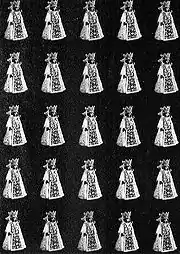Schluckbildchen had a square, rectangular or round shape and a feed size of 5 to 20 mm. So they were the smallest form of devotional art design. Small pictures of the 19th century were partly bigger, like the version that was produced in Einsiedeln (32x22 mm). Also Schluckbildchen were produced on light sheets of paper; one sheet could hold 130 pieces. Both possible were series of one theme as well as different themes which would always have the same style. Schluckbildchen can be detected after the middle age.[3] Up to the 19th century copper engraving printings were most likely, including some notes (for example in Mariazell) which were produced with a woodcarving technique. Later, colour printing was used; in the 20th century also photomechanical reproduction of old artworks.