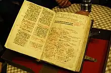 The first Polish dictionaries took the form of Polish–Latin (or more correctly, Old Polish–Latin) bilingual translation aids and date to the 15th century.[1] The oldest known one is the Wokabularz trydencki from 1424; it contains about 500 entries, and is associated with the Prince Alexander of Masovia.[2]: 45 [3]: 73 The largest of those earliest dictionaries was the Silesian Mamotrekt kaliski (from c. 1470), with about 7,000 entries.[4]: 139 The 16th century saw a proliferation of printed dictionaries; the first of those were written abroad and reprinted in Poland. The first such dictionary was the trilingual German–Latin–Polish Dictionarius Ioannis Murmellii variarum rerum from 1526. It had about 2,500 entries and was based on the work of the Dutch scholar Johannes Murmellius and published in Poland by Hieronim Wietor (most likely with Wietor responsible for the German part, and Hieronim Spiczyński for the Polish).[5][6][7] Dozens of other bilingual Polish dictionaries were published in the subsequent centuries by scholars such as Bartłomiej of Bydgoszcz, Johann Reuchlin, Jan Mączyński, Nicolaus Volckmar, Grzegorz Knapski and others.[2]: 45–60