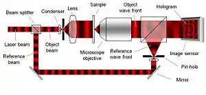 - ↑ Myung-K. Kim (2010). "Applications of Digital Holography in Biomedical Microscopy". J. Opt. Soc. Korea. 14 (2): 77–89. doi:10.3807/JOSK.2010.14.2.077.