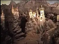 The landscape has been built entirely out of styrofoam. The Diorama is the first attraction with contributions of Ton van de Ven, the creative director of Efteling at that time. He made some sketches for it, but they weren't used for the Diorama; years later they were used for one of the scenes in the dark-ride Dreamflight.[2]