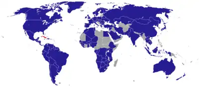 - 1 2 3 4 5 6 7 8 9 10 11 12 13 14 15 16 17 18 19 20 21 22 23 24 25 26 27 28 29 30 31 32 33 34 35 36 37 38 39 40 41 42 43 44 45 46 47 48 49 50 51 52 53 54 55 56 57 58 59 60 61 62 63 64 65 66 67 68 69 70 71 72 73 74 75 76 77 78 79 80 81 82 83 84 85 86 87 88 89 90 91 92 93 94 95 96 97 98 99 100 101 102 103 104 105 106 107 108 109 110 111 112 113 114 115 116 117 118 119 120 121 122 123 124 125 126 127 128 129 130 131 132 133 134 135 136 137 138 139 140 141 142 143 144 145 "List of Cuban Mission Abroad". Ministry of Foreign Affairs of Cuba. Retrieved 18 December 2023.