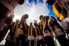 The Djarrak Football Club is an amateur Australian rules football club that competes in the Gove Australian Football League, based in Nhulunbuy in the Northern Territory, Australia. The team was formed in 1973 and is a foundation club of the Gove AFL. Djarrak Football Club claimed the first contested Premiership in 1975. The club also won a further five premierships in 1980, 1981, 2000, 2009, 2015 and 2017. The club won the first contest Gove AFL Women's Premiership in 2017. The club play in brown and gold vertically striped guernseys.