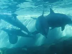 Throughout the day, visitors can feed the dolphins for a fee.[5] Trainers give informational speeches about the bottlenose dolphin.[6] .