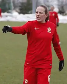 She scored in Poland's first game in the 2011 World Cup qualifying against Ukraine.[1]