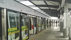 Dongchengyi Road (simplified Chinese: 东城一路; traditional Chinese: 東城一路; pinyin: Dōngchéngyī Lù) is a station on the Pujiang line of the Shanghai Metro. The station is located at the intersection of Sanlu Highway and Dongchengyi Road,[1] between Puhang Road and Huizhen Road, the southern terminus of the line. It began passenger trial operations with the rest of the Pujiang line on March 31, 2018.[3]