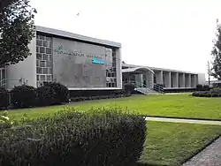 The courthouse was built in 1956,[2] after the 1896 courthouse burned down.[3] It was built where three prior courthouses originally stood.[3] It was designed in the International Style by Harry E. Roos, Jr. of Southern Engineering.[4]