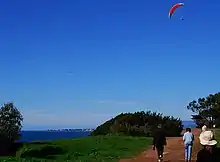 Paraglider and hang glider pilots frequently launch from a cliffside spot 200 meters from the entrance, taking advantage of frequent updrafts as onshore winds are directed nearly vertically by the cliffs. With sufficient winds, pilots have reported staying aloft for hours, traversing the cliff line numerous times before landing either at the launch point itself or on the beach below. As many as 8 paragliders have been in the air at one time during exceptionally good wind conditions.