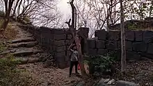 The path to the Dronagiri fort starts from the Uran Bus stand. The narrow road in front of the Bus stand leads to Daur Nagar. After passing through the tribal hutments in Daur nagar a lone path leads to the fort. The path is a gradually climbing northern detour around the hill. The entire path passes through dense forest of Gliricidia sepium or Mexican Lilac trees planted by Forest department.[3] There is a Police Chowki near the Church on the fort. Night halt on the fort is restricted.