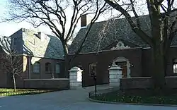 Prior to the 1920s, land stretching from 92nd Street to 86th Street was privately owned. The Dyker Meadow Land and Improvement Company owned the largest parcel and leased the land to both the Dyker Golf Club and Marine and Field Club, who used the Dyker Heights Club House, built in 1898, as their golf club house.[12] In February 1916, the Poly Prep Country Day School, which was moving from 99 Livingston Street in Downtown Brooklyn to Dyker Heights, was unsuccessful in its attempts to purchase this parcel for their new county day school, as they were some $80,000 short.[13] Thus, the land was sold to the NYC Parks Department. However, Parks Commissioner Raymond V. Ingersoll, who had two boys at Poly, offered the school a 25-acre (100,000 m2) site on 92nd Street and 7th Avenue, which was donated to the Parks Department by Frederic B. Pratt, the Chairman of the Brooklyn Committee on City Planning.[13] The school graciously accepted the offer and constructed a neo-Georgian school, which still functions today in this same location.