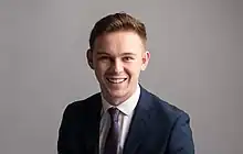 Tennyson was elected as a Member of the Legislative Assembly (MLA) for Upper Bann in the 2022 Assembly election, outpolling the leader of the Ulster Unionist Party and gaining a seat at the expense of the SDLP's Dolores Kelly. He polled 6,440 (11.5%) first-preference votes, increasing Alliance's share by 6.2% on the previous Assembly election. Tennyson became the first non-designated politician to be elected for the Upper Bann constituency.[8] At 23-years-old, he also became the youngest MLA elected to the Assembly, and gained the unofficial title of Baby of the House.[9] He is the third openly gay MLA to serve, joining his party colleagues John Blair and Andrew Muir.[10]