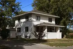 The E.R. Gibson House is a historic building located in Mason City, Iowa, United States. Built in 1912, this two-story stucco structure exhibits a strong Prairie School influence.[2] It features a wide eaves, hip roof, a central chimney, and casement windows of leaded glass. The house was listed on the National Register of Historic Places in 1980.[1]