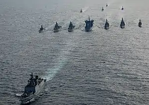 The Eastern Fleet is a Naval fleet of the Indian Navy. It is known as the 'Sword Arm' of the Eastern Naval Command and called the Sunrise Fleet.[2][1] It is headquartered at Visakhapatnam, Andhra Pradesh on the east coast of India. It is a part of the Eastern Naval Command and is responsible for the naval forces in the Bay of Bengal and parts of the Indian Ocean.