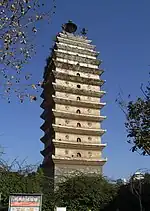 The Eastern and Western Pagodas (东寺塔与西寺塔; Dongsi Ta / Xisi Ta) are two pagodas, about 200 metres (660 ft) apart, in the Xishan District of Kunming, Yunnan, China. Also known as the Pagoda of the East Temple (25°01′55″N 102°42′38″E / 25.0320°N 102.7106°E) and the Pagoda of the West Temple (25°01′55″N 102°42′24″E / 25.0319°N 102.7067°E),[1] they were constructed in the late eighth or early ninth century AD, under the rule of the Kingdom of Nanzhao.[2]