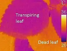Infrared image showing the importance of transpiration in keeping leaves cool.