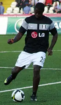 On December 31, 2009, Johnson joined Greek side Aris Thessaloniki on loan for the remainder of the 2009–10 season.[15] On January 13, 2010, Johnson made his first appearance for Aris, coming on as a 79th-minute substitute in a 2–0 victory over Asteras Tripoli F.C. in the round of 16 of the Greek Cup.[16] He made his Greek Super League debut, appearing as a second-half substitute against PAS Giannina F.C., on January 17, 2010.[17] Johnson scored two goals in their playoff win over Olympiacos. Johnson scored five goals for Aris and was one of the top goalscorers in the Greek Super League Playoff with three goals.