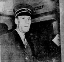 Two men attempted to rob a streetcar with a rifle on December 6, 1938.[19] Motorman Peter Packham was reversing his empty streetcar on a wye in order to start a new run on the Red and White route when one of the suspects, estimated to be between 18 and 20 years old, pulled the trolley pole off of the overhead wire.[19] When Packham, who had approximately $60 in cash and tickets, disembarked to put the pole back, he saw a man standing on the track; the suspect pointed a sawed-off .22 caliber rifle at him and told him to "stick them up."[19]
