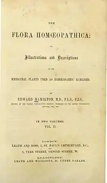 Edward Hamilton (1815 – 3 August 1903) was an English physician who practiced homeopathy, and is noted for his 1852–53 two-volume work The Flora Homoeopathica with colour illustrations and descriptions of the medicinal plants then used in homoeopathic remedies.