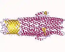 - ↑ Shi X, Chen M, Yu Z, Bell JM, Wang H, Forrester I, Villarreal H, Jakana J, Du D, Luisi BF, Ludtke SJ, Wang Z (14 June 2019). "In situ structure and assembly of the multidrug efflux pump AcrAB-TolC". Nature Communications. 10 (1): 2635. Bibcode:2019NatCo..10.2635S. doi:10.1038/s41467-019-10512-6. PMC 6570770. PMID 31201302.