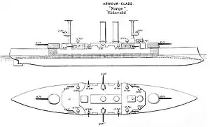 The Eidsvold class was a class of coastal defence ships, two of which were built for the Royal Norwegian Navy in 1899 by Armstrong Whitworth. The class consisted of two ships, HNoMS Eidsvold and HNoMS Norge. Locally they were referred to as panserskip (lit.: armoured ship).