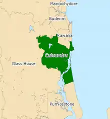 Caloundra is a Legislative Assembly of Queensland electoral district on the Sunshine Coast in the Australian state of Queensland. The electorate is centred on the city of Caloundra and stretches north to Wurtulla, south to Pelican Waters and west to the Bruce Highway.[1]