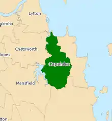 Capalaba is an electoral division of the Legislative Assembly of Queensland in the state of Queensland, Australia. The electorate is centred on the suburb of Capalaba, in Redland City east of Brisbane, and includes parts of the adjoining suburbs of Alexandra Hills and Birkdale.[1]