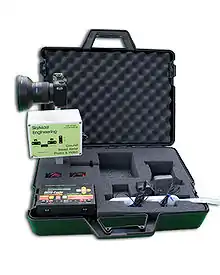 The ground control unit, which is the user interface, can be a R/C hobby-type unit, or a specialized Mobile app running on a computer tablet or smartphone. It allows the photographer / operator to see what the camera sees, and being able to control the cameras position; which means framing, tilting, panning and zooming the lens in-and-out in order to compose the image; and then trigger the shutter.