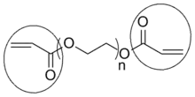 End group example of poly(ethylene glycol) diacrylate with the end groups circled