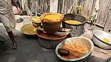 Multiple containers of palm oil.