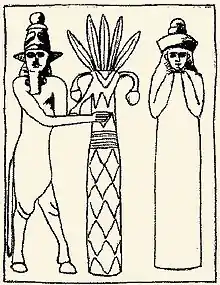 Jeremy Black discusses the problems of serial pregnancy and multiple births along with the complex psychology of the myth. He also notes that there are no moral overtones about Enlil being ritually impure.[11] Ewa Wasilewska noted about the location of the tale that "Black and Green suggest the Sumerians located their underworld in the east mountains where the entrance to Kur was believed to exist. He (Enlil) was thus the 'King of the Foreign Lands/Mountains,' where the underworld to which he was banished and from which he returned, was located."[12] Robert Payne has suggested that the initial scene of the courtship takes place on the bank of a canal instead of a river.[13]