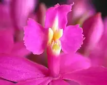 Epidendrum sect. Schistochila Rchb.f. (1861) is a section of the subgenus E. subg. Amphiglottium Lindl. (1841)[1] of the Genus Epidendrum of the Orchidaceae. E. sect. Schistochila differs from the section E. sect. Holochila in that the species in E. sect. Holochila have undivided lips; the species in E. sect. Schistochila have lobate lips. The species in both E. sect. Schistochila and E. sect. Holochila have racemose inflorescences, unlike those in E. sect. Polycladia (the other section of E. subg. Amphiglottium), which have truly paniculate inflorescences.[2] Like the other sections of E. subg. Amphiglottium, the members of E. sect. Schistochila are sympodial orchids bearing thin stems with alternate leaves (not pseudobulbs), a long peduncle covered with thin, imbricating sheathes, and a lip adnate to the very end of the column.
