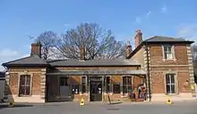 North Weald's platform one was closed in 1976; then the passing loop/westbound track was lifted in 1978.[6] Until that time, the station was controlled from the original Eastern Counties Railway signal box, which is still sited on the westbound platform, now fully restored. North Weald was the last section of the London Underground to be signalled with mechanical semaphore signals.[7]