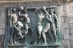 The relief sculpture with the inscription, ...discipline of physical culture...[to] benefit...Portugal