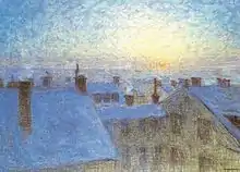He lived his whole life together with his mother and brother at Södermalm, the southern part of Stockholm. They eventually settled in a flat at No. 40 Bastugatan, on a height with a view over most of central Stockholm including the Riddarfjärden bay and the Old town. Most of his paintings from the 1890s up to 1904 are night views over Riddarfjärden, as he would have seen it from his home, or street views from various parts of Södermalm. They are dominated by shades of blue and very visible brush strokes, often crossing one another. Over the years his paintings moved towards increasing simplification and abstraction, and at the end of his "blue" period, little more than the street lights and their reflections in the waters can be discerned from the mass of blue of the canvas.