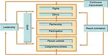 EQUASS is built on ten quality principles that reflect the wishes of its European stakeholders (funders, social partners, client representatives and advocacy groups),[17] balancing business efficiency requirements, with a strong focus on protecting the rights of the clients, and a person-centred approach, while ensuring a professional development and training of the staff.