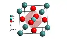 {{cite journal}}: CS1 maint: multiple names: authors list (link) - ↑ T. Katsufuji and H. Takagi (2001). "Coupling between magnetism and dielectric properties in quantum paraelectric EuTiO3". Physical Review B. 64 (5): 054415-1–054415-4. Bibcode:2001PhRvB..64e4415K. doi:10.1103/PhysRevB.64.054415.